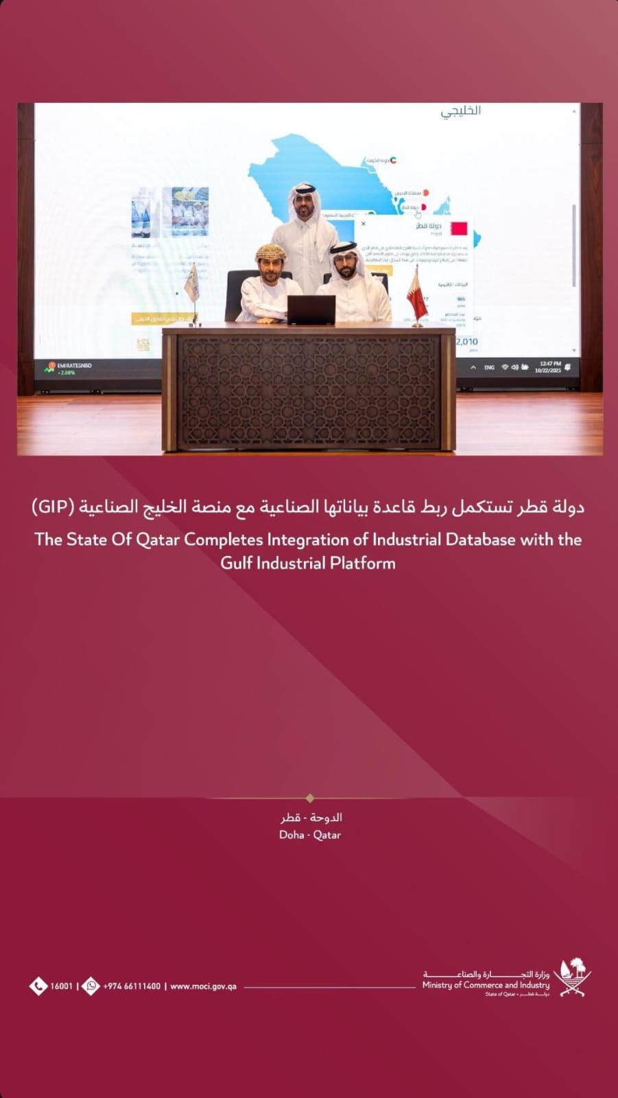 The Ministry of Commerce and Industry of the State of Qatar highlights the completion of the API integration of its industrial data with the Gulf Organization for Industrial Consulting as part of the requirements for the Gulf Industrial Portal (GIP)