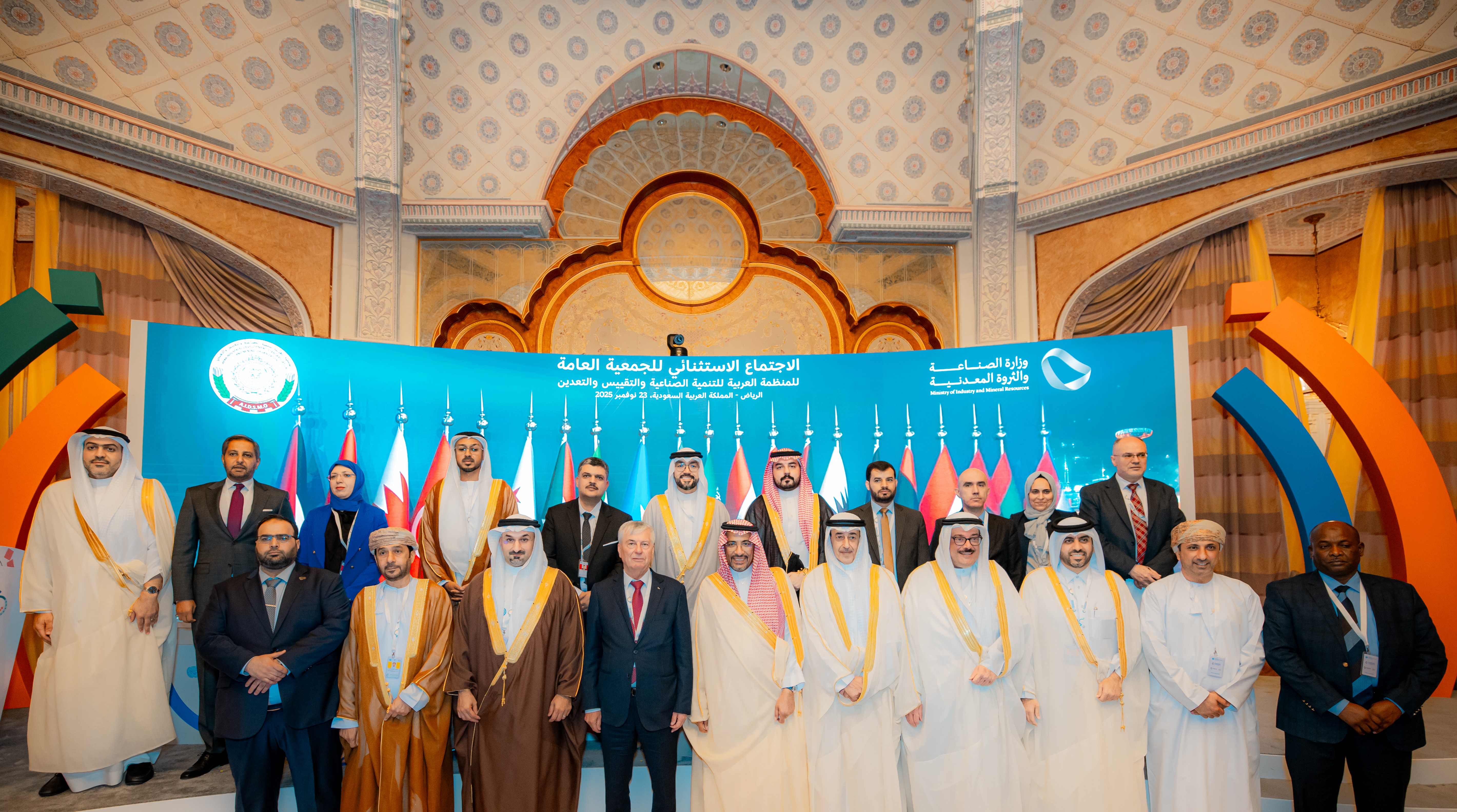 This approval came during the extraordinary meeting of the General Assembly of the Arab Organization for Industrial Development, Standardization and Mining (AIDSMO), held in Riyadh, Kingdom of Saudi Arabia, on November 23. The meeting was inaugurated by Eng. Adel Saqr Al-Saqr, Director General of AIDSMO, and chaired jointly by H.E. Bandar Ibrahim Al-Khorayef, Minister of Industry and Mineral Resources of the Kingdom of Saudi Arabia, and H.E. Arafat Asfour, Minister of Industry of the State of Palestine, with the attendance of several Arab ministers, officials, and industrial leaders.